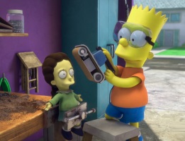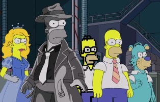 A list shows some of what Trump has done in the past few years (One of which was spelled wrong). Homer votes in his dream, but then Marge wakes him up. Homer says that it's not a big deal that he didn't vote. On January 20, 2021 (Inauguration Day), the town is in ruins with U.S. security robots all around the city. Soon the Horsemen of the Apocalypse arrive, with flags that read "pestilence", "famine", "war", and "Treehouse of Horror XXXI"!