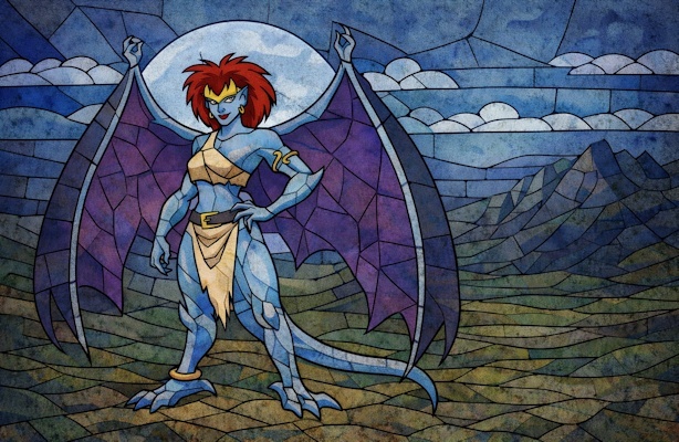 Demona was hatched in 938. By 971, she and Goliath had already begun to fall in love. At the time, she was known only as the “Angel of the Night,” or simply Angel, a name Goliath used with affection. She was close not only to him, but also to her rookery sisters, Desdemona and Hyppolyta. Even then, however, she was developing the fears and anger that would later shape her darker path.