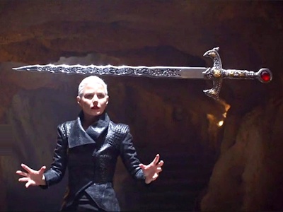 - Intended to use it to cut himself off from his immortality, sword was smashed by Nimue